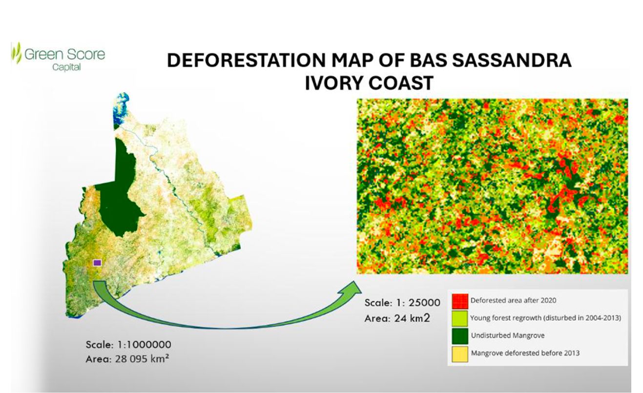 - Suivi précis des parcelles d’origine : localisation et surveillance des parcelles d’où proviennent vos matières premières, à l’aide d’images satellites et de données d’occupation des sols.