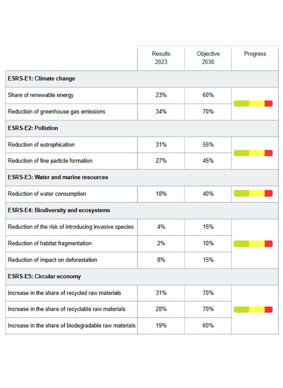Renseigner les indicateurs des volets E1 (climat) à E5 (biodiversité, pollution, ressources),