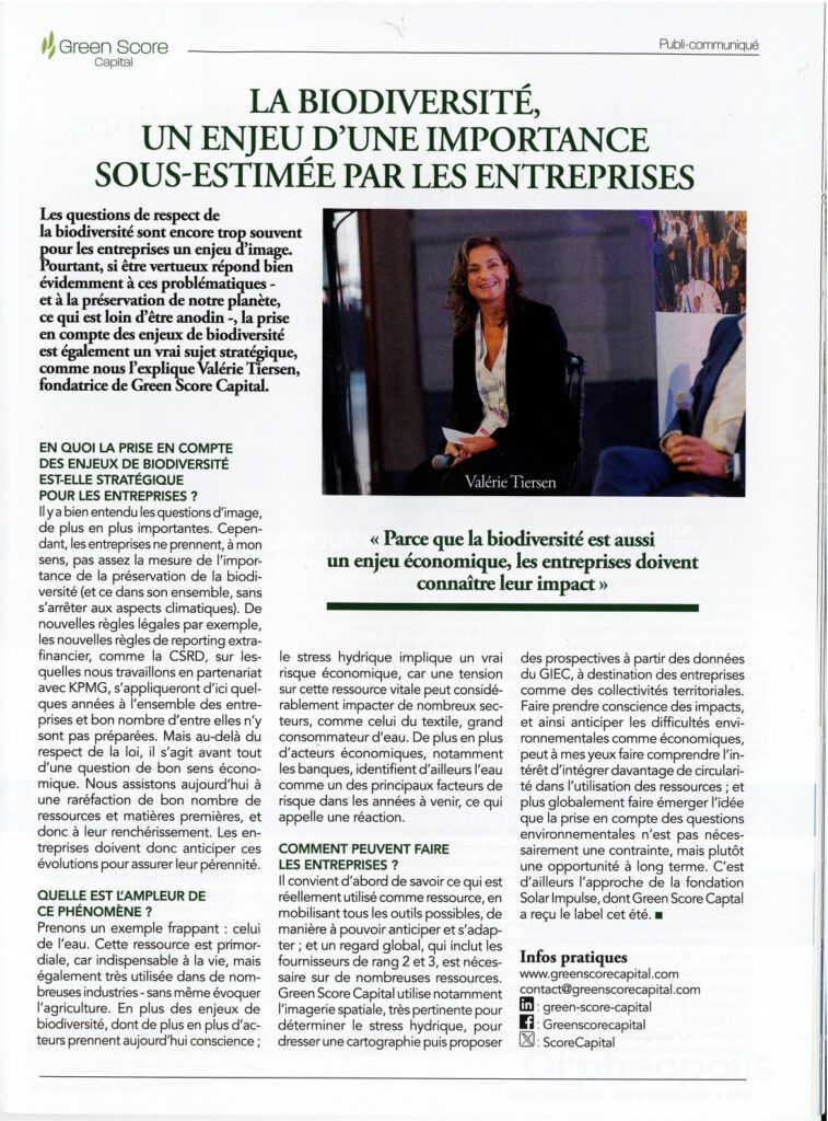 Comme l’explique Valérie Tiersen, dans un communiqué public dans le journal #Challenges, Green Score Capital évalue ces enjeux grâce à la technologie spatiale afin de préparer les entreprises aux futures règles légales comme la CSRD.